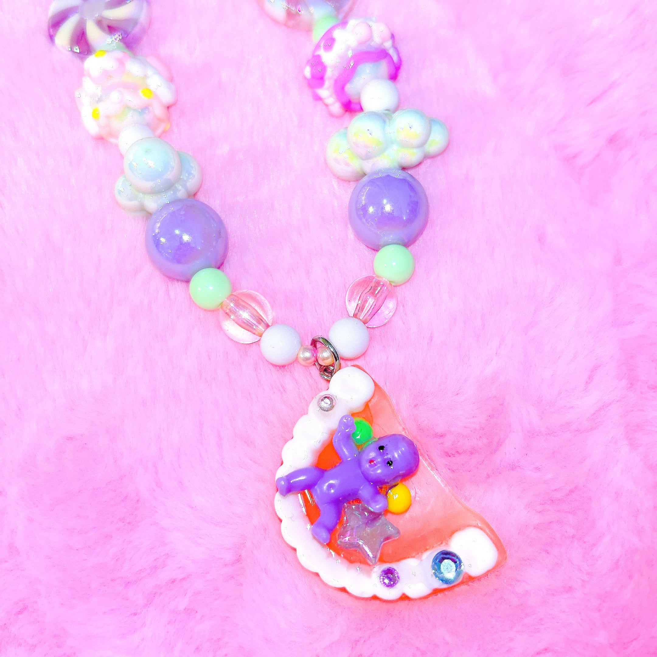 ギラギラでピンク×パープルなビーズでのネックレス☆
