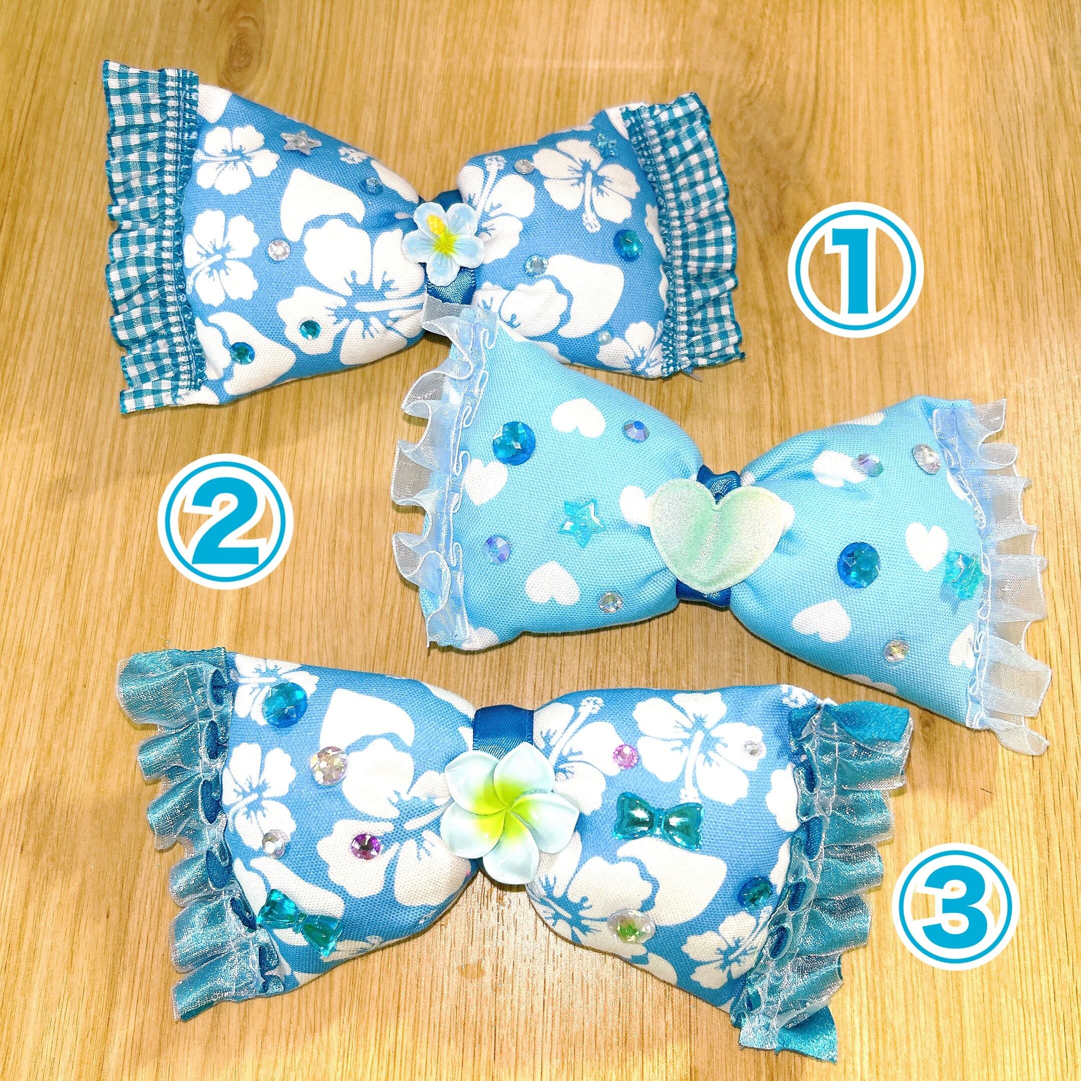ハンドメイドのリボンピン 1から布を切りワタを詰めデコレーション しました☆ インパクト大のリボンに!