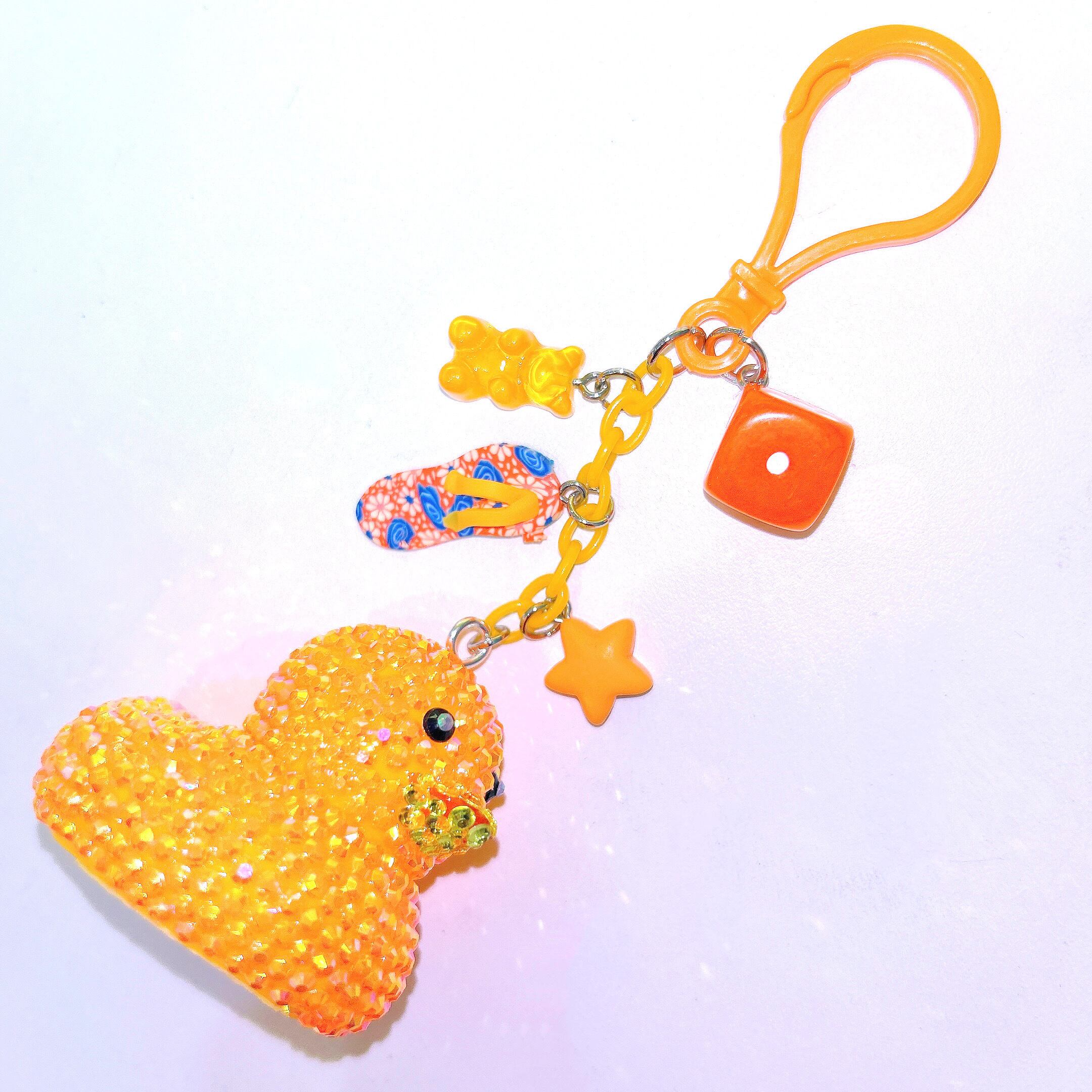 アヒルの色と合わせたPOPなチャームも