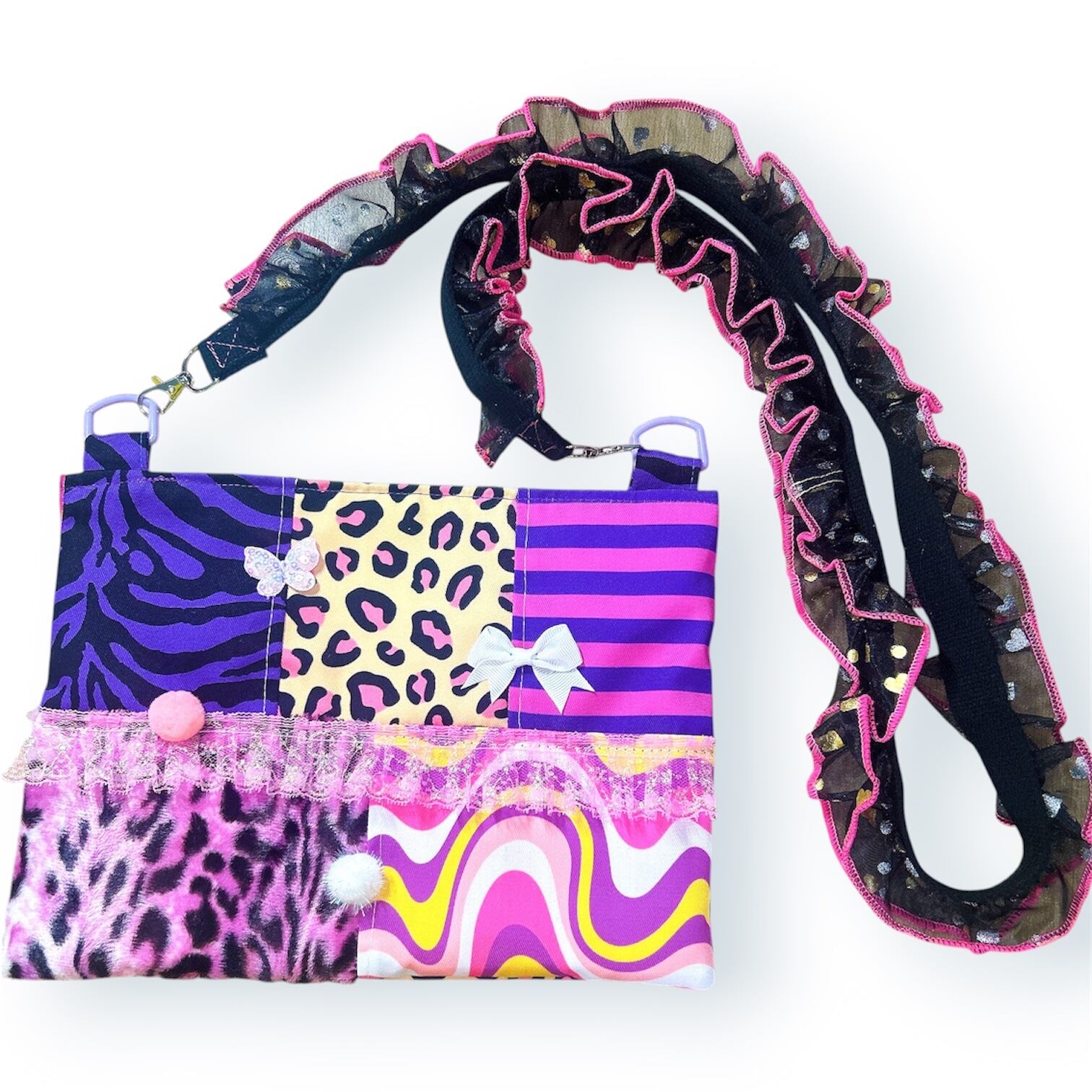 紐の部分もフリフリ倍増で仕上げたバック。
