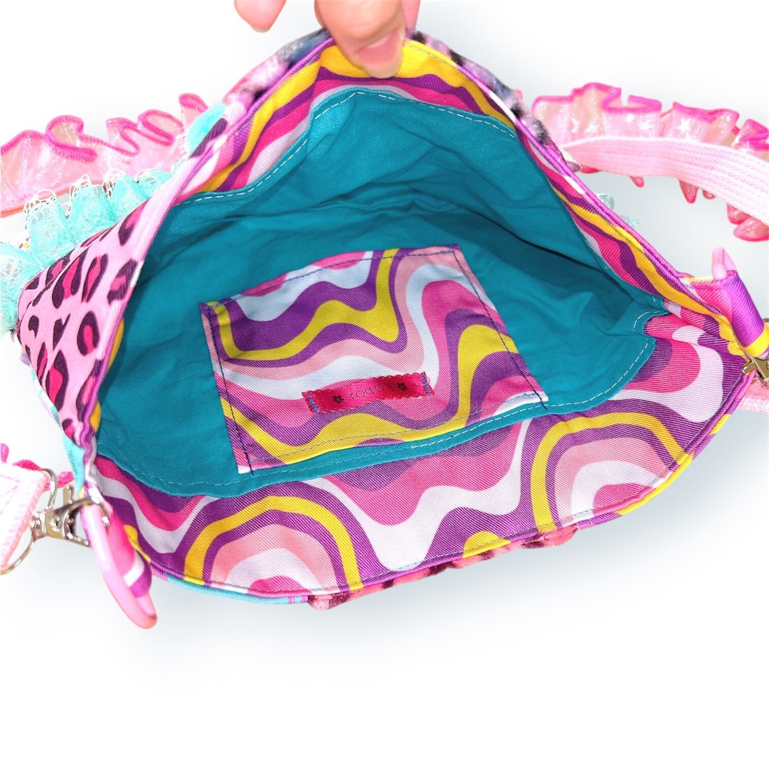 紐の部分もフリフリ倍増で仕上げたバック。